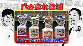 今回のバカ売れ商品候補は洗車後にシュッとするだけ!超簡単「BODYワックス時短シリーズ」。50年間愛され続けるカーケア商品「クリンビュー」を製造している企業の登場にドランクドラゴン塚地武雅副所長も大興奮!!用途に合った「BODYワックス時短シリーズ」を愛車に吹きかけるだけで簡単にが驚きの輝きを取り戻すという「BODYワックス時短シリーズ」。魔法のようなBODYワックスをドラマ仕立てで紹介するも、出演陣の大根っぷりにスタジオ大ブーイング・・・。そんなスタジオを震撼させた驚きの効果とは!?