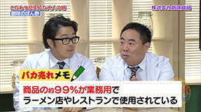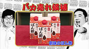 今回のバカ売れ商品候補は何の食材にも合う!?万能なぽん酢「創味のぽん酢」。プロの味を支えて60年以上??こだわりが生んだという「創味のぽん酢」に塚地副所長も興味津々!!4000種類ある商品のうち99%がレストランなどで使用され、1950年創業以来、日本の味を支えてきた株式会社創味食品。そんな株式会社創味食品が自信を持って販売している「創味のぽん酢」をスタジオで実食!! こだわりの食材を使い生み出された「創味のぽん酢」の美味しさにスタジオ大興奮!!ドランクドラゴンが叫ぶほど美味しい「創味のぽん酢」のその味やいかに!?