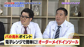 電子レンジで簡単に!オーダーメイド インソール「ビオンテックマーク2」。足と靴にフィットするインソールを自宅で簡単に作れるという「ビオンテックマーク2」に塚地副所長も興味津々!!