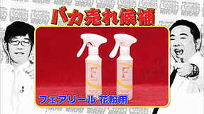 今回のバカ売れ商品候補はナノコーティングで花粉をブロック『フェアリール花粉用』。外出時、衣類にスプレーするだけで、花粉や黄砂などをブロックできるというスプレーに花粉症に苦しんでいるドランクドラゴンも興味津々!!独自のナノコーティングによって花粉などをブロックし、衣類への付着を防ぐことができるという『フェアリール花粉用』。そんな『フェアリール花粉用』の効果をスタジオで大検証!!スプレーするだけで花粉などを寄せ付けない『フェアリール花粉用』の魅力やいかに!!