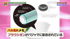 その秘密は「プラウシオン」というミネラル分の鉱石の粉体がパジャマの生地に配合されており、血流を改善、その結果「睡眠不足」「冷え性」「肌荒れ」などを改善する効果が期待できるとされている。そんなプラウシオンの効能をスタジオで大検証!!鈴木所長も唸ったその驚きの効能やいかに!?
